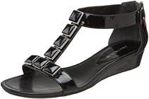 Enzo Angiolini NUSA Review: Warning, these appear to be white 'leather' in the photo image however the finish is 'patent' which may be difficult to touch-up if scuffed. These are cute with their white 'n silver chiclet adornment, however I feel they are more for casual wear. If you plan to do a lot of walking; the wedge height is sensible (about 1") and the sole is rubber. I wear a size 8.5 and find the front over strap controls the toes yet at the same time allows comfort in ... Read more »